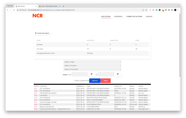 We created a custom, online tool to handle non-conformance reporting for CHT Australia.